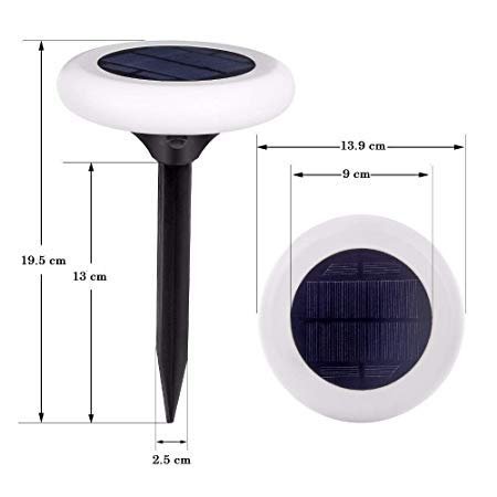 Solar Disk lights are powered by solar energy through the high efficient solar panel and rechargeable battery. The solar panel converts sunlight into electric energy and charges the battery during day time. The light sensor automatically turns the light on at night.